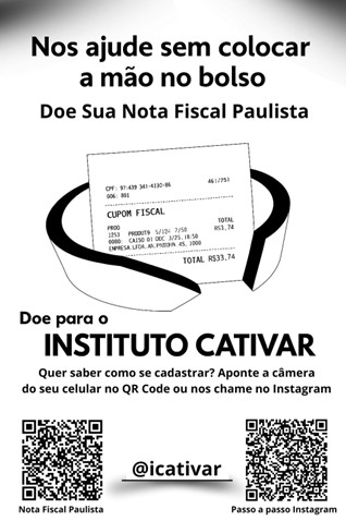 Se você puder cadastrar o Instituto Cativar como doador automático da sua Nota Fiscal Paulista, cada compra que você fizer vai gerar um pequeno crédito que se transforma em oportunidades reais: oficinas de arte, música, dança, apoio no mundo do trabalho... é carinho colocado em ação.